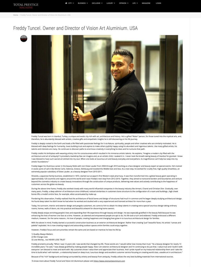 Freddy proclaims proudly, “When I was 12 years old, I saw words that changed my life. Those words are: ‘I would rather lose money than trust.’ “As a beauty designer for nearly 13 incredible years,” he said, “I was deeply gratified by making people happy. Now I am exterior architectural designer and I’m continuing to dojust that. I value trust and I build it with everyone I am blessed to meet and work with.