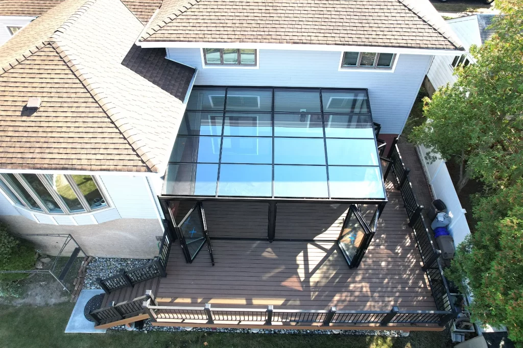 Taking into account Richfield’s climate conditions, the sunroom features durable, low-maintenance aluminum as the primary material. Known for its robustness, sleek appearance, and ease of care, aluminum allowed for the creation of a sustainable space designed to last. Large glass panels were incorporated to maximize natural light entry, enhancing energy efficiency, while custom design details were tailored to the client’s preferences.